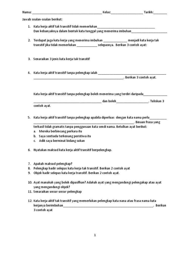 Latihan Kata Kerja Tak Transitif Pdf